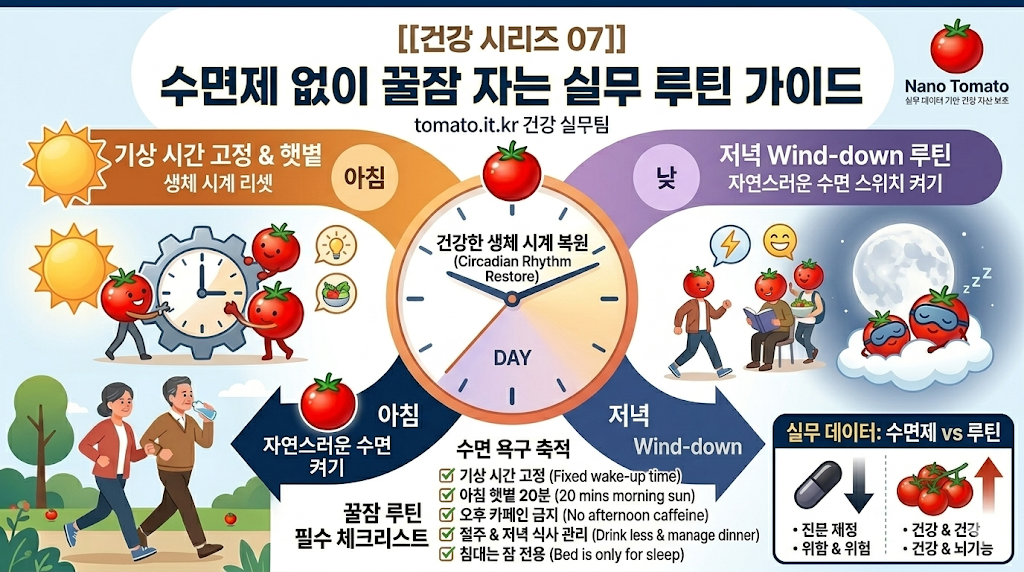 #5060 불면증 극복 #수면제 없이 잠드는 법 #기상시간고정실무 #아침햇볕수면효과 #멜라토닌호르몬장애 #수면인지행동치료 #토마토트립토판 #은퇴 후 건강자산 #토마토건강실무 #불면증 치매위험 #수면위생체크리스트